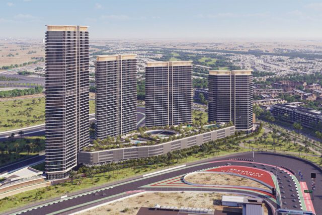- Sweeping vistas of the race track, amenity podium, low-rise residences, lush landscape, Butterfly Garden & horizon of Burj Khalifa cityscape