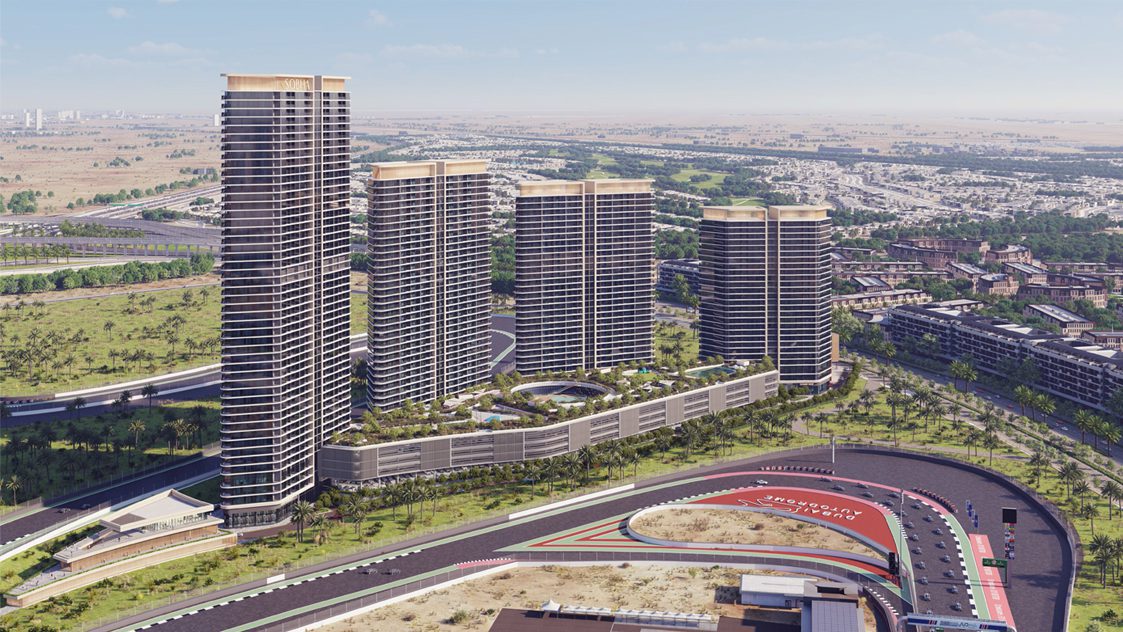 - Sweeping vistas of the race track, amenity podium, low-rise residences, lush landscape, Butterfly Garden & horizon of Burj Khalifa cityscape